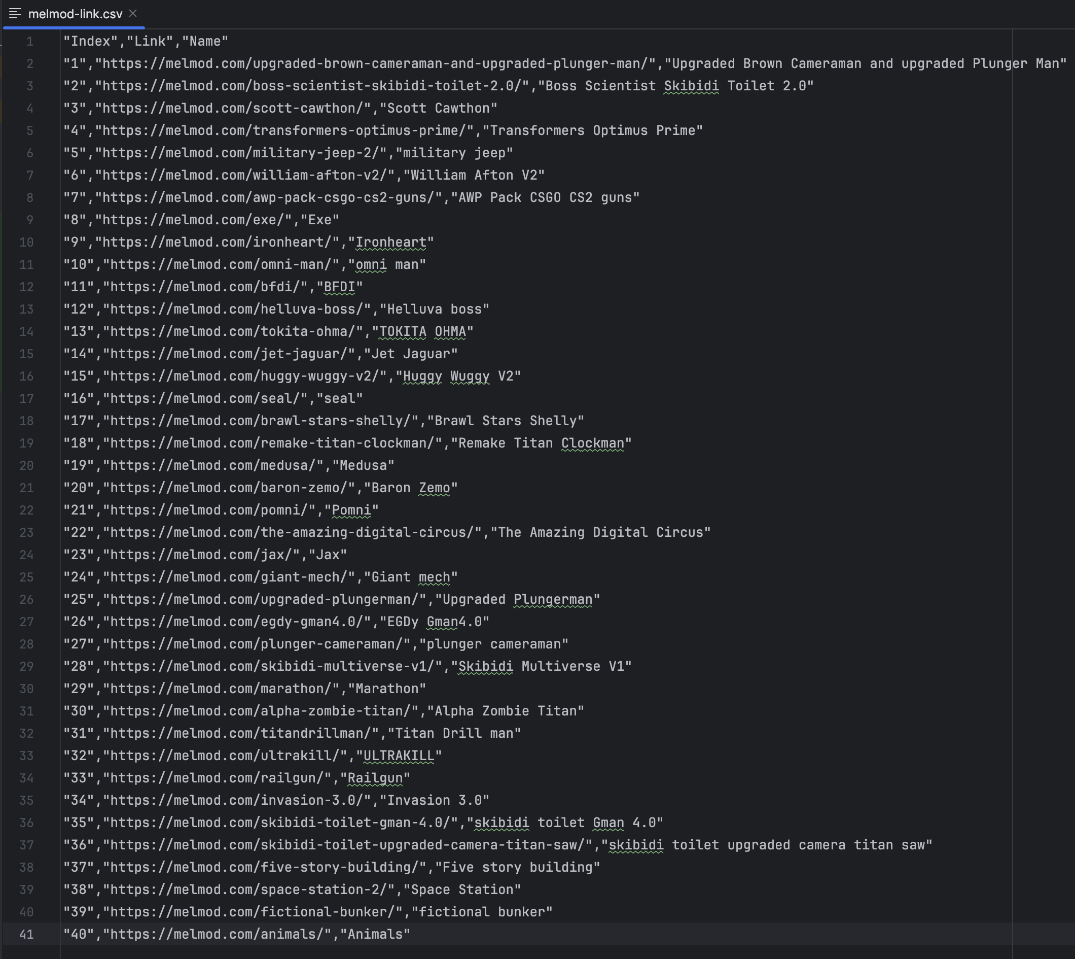 Once we have the article links stored in src/test/resources/melmod-link.csv, the next step is to delve into each article and the desired data—image, name, and mod file link:
